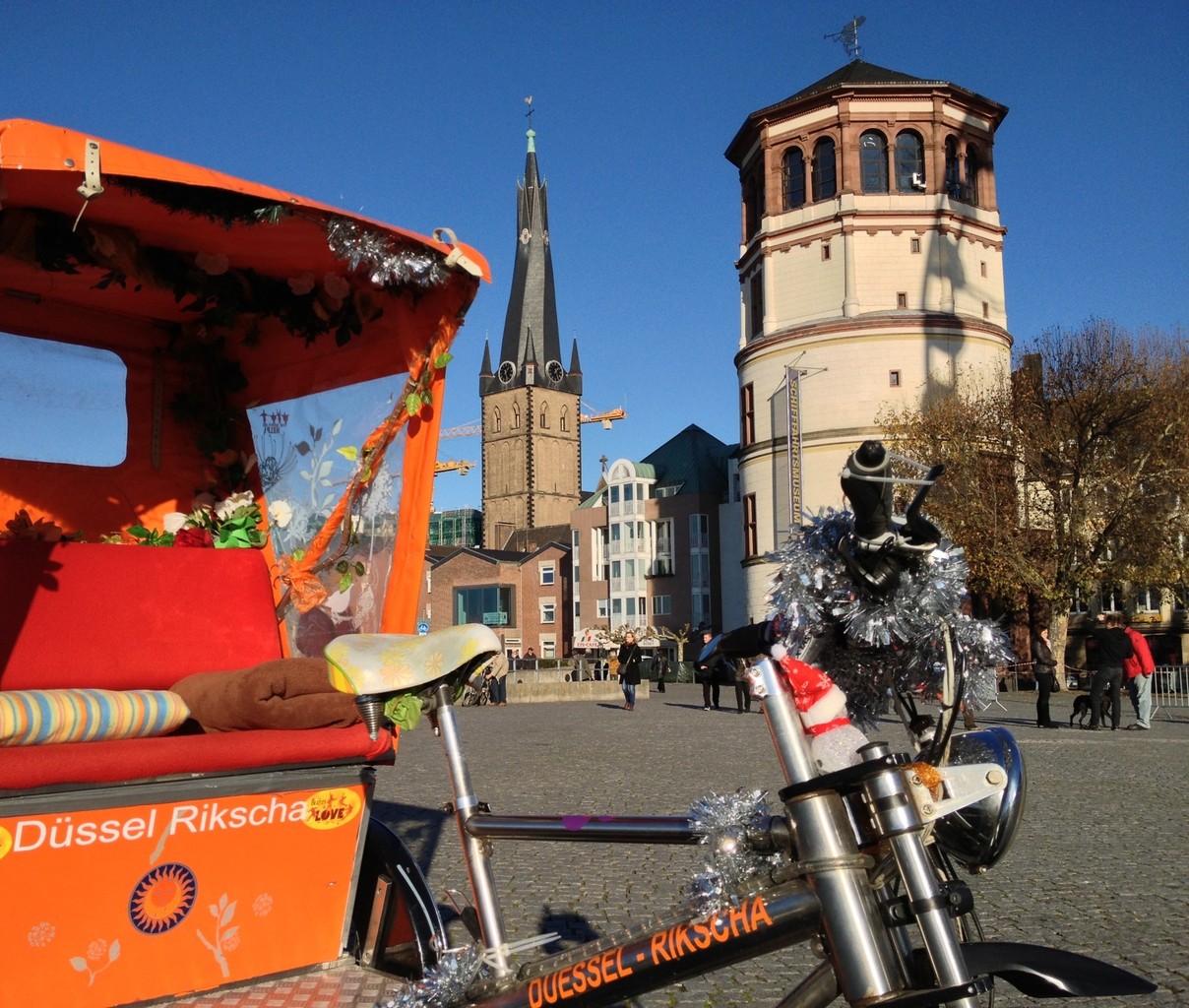 Bei einer entspannten Fahrt mit einer unserer Rikschas können Sie die Sehenswürdigkeiten Düsseldorfs - auch mit kurzen Stopps für Erklärungen zum Gesehenen und zum Fotografieren - genießen.